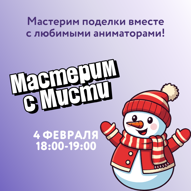 4 февраля в 18:00 сделай себе снеговика-магнитик, который не растает с приходом весны на творческом мастер-классе в Мисти Парке!