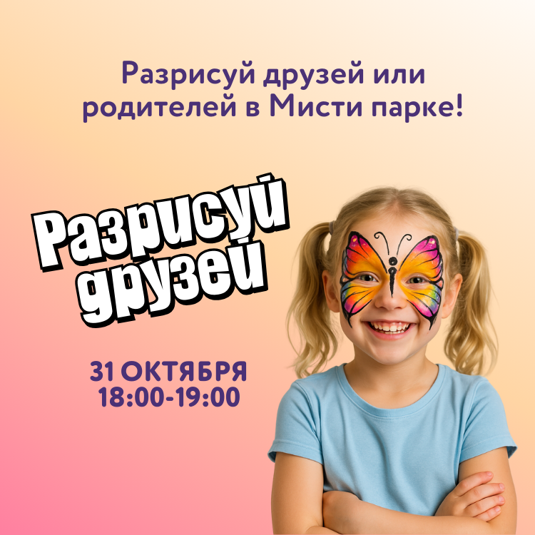 31 октября в 18:00 в Мисти Парке осваиваем мастерство аквагрима под руководством наших опытных художников! Разрисуем вместе друзей и родителей? Жду-у-у тебя в Мисти Парк!