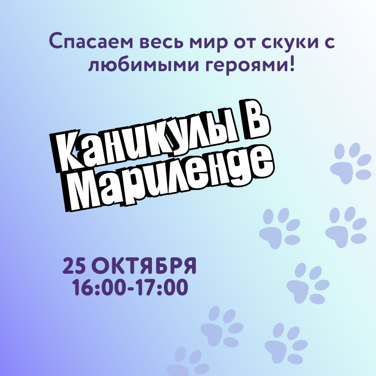 25 октября в 16:00 вместе с любимыми героями из Мариленда спасаем кондитерскую и весь мир от скуки! Пр-р-р-риходи!